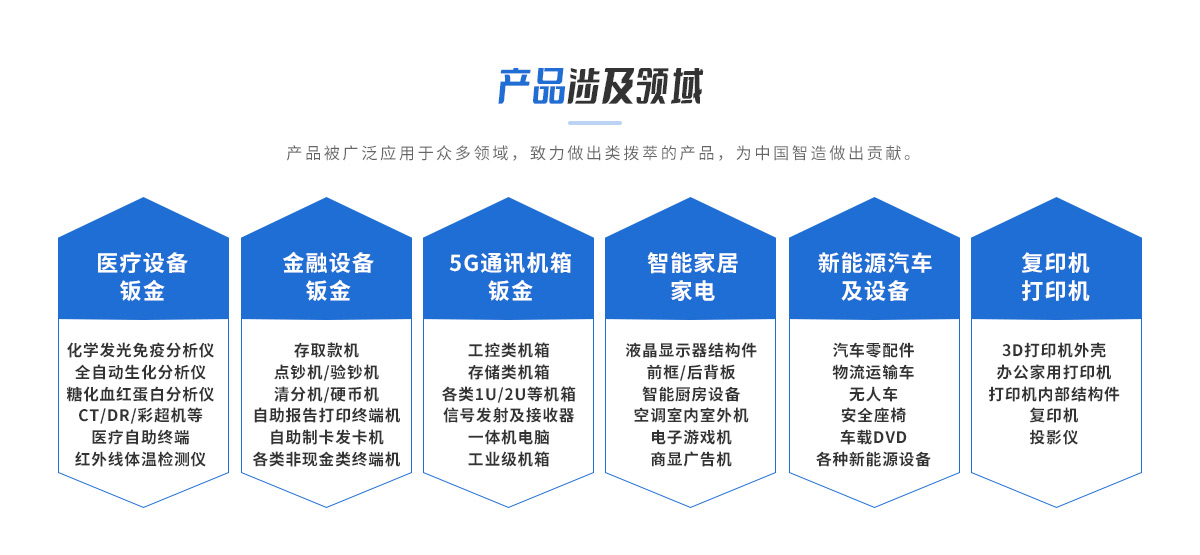 尚恩精密鈑金專注于高精度/高難度的精密鈑金件加工,包括各類精密鈑金結(jié)構(gòu)件、精密異形鈑金件精密鈑金機箱、來圖定制、來樣定制、鈑金打樣及批量生產(chǎn)等,產(chǎn)品被廣泛應用于眾多領(lǐng)域。如:醫(yī)療設備領(lǐng)域,金融器具領(lǐng)域,打印復印機領(lǐng)域,5G通訊機箱領(lǐng)域,智能家居家電,新能源汽車及設備,電視機后背板,自動化機器人,車載影音及導航,各類彈片和屏蔽罩等,擅長制作各類異形凸包及特殊復雜形狀的鈑金件和結(jié)構(gòu)件,產(chǎn)品被眾多客戶暢銷世界各地并得到認可與好評。